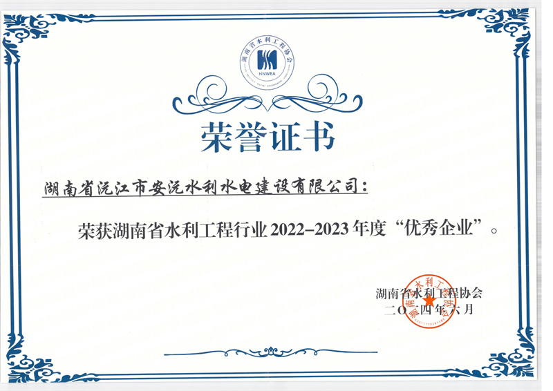 - 2024-06-29 安沅公司榮獲湖南省水利工程行業“優秀企業